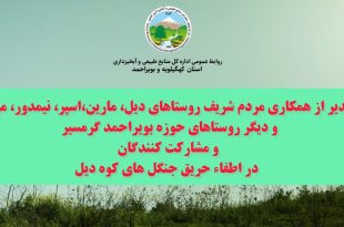 تقدیر سرپرست منابع طبیعی و آبخیزداری کهگیلویه و بویراحمد از مشارکت مردم در اطفاء حریق …