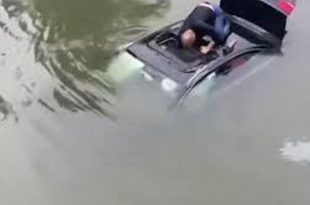سقوط یک خودرو به داخل رودخانه درمنطقه تایژو، استان جیانگسو چین، در خودرو قفل بود، …